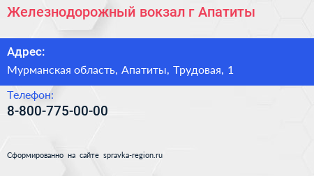 Железнодорожный вокзал, г. Апатиты по адресу Мурманская область, Апатиты, Трудовая, 1 в дальнейшем Организация, размещена в следующих категориях: