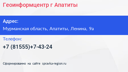 Геоинформцентр, г. Апатиты по адресу Мурманская область, Апатиты, Ленина, 9а в дальнейшем Организация, размещена в следующих категориях: