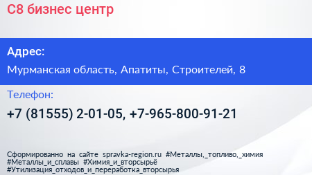 С8, бизнес-центр по адресу Мурманская область, Апатиты, Строителей, 8 в дальнейшем Организация, размещена в следующих категориях: