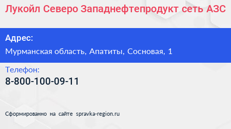 Лукойл-Северо-Западнефтепродукт, сеть АЗС по адресу Мурманская область, Апатиты, Сосновая, 1 в дальнейшем Организация, размещена в следующих категориях:
