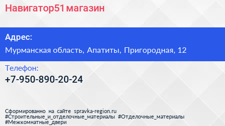 Навигатор51, магазин по адресу Мурманская область, Апатиты, Пригородная, 12 в дальнейшем Организация, размещена в следующих категориях: