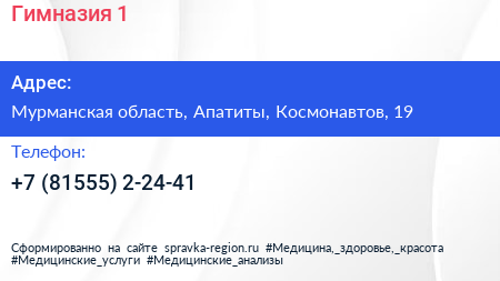 Гимназия №1 по адресу Мурманская область, Апатиты, Космонавтов, 19 в дальнейшем Организация, размещена в следующих категориях:
