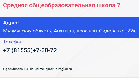 Средняя общеобразовательная школа №7 по адресу Мурманская область, Апатиты, проспект Сидоренко, 22а в дальнейшем Организация, размещена в следующих категориях: