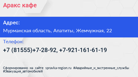 Аракс, кафе по адресу Мурманская область, Апатиты, Жемчужная, 22 в дальнейшем Организация, размещена в следующих категориях: