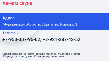 Хамам, сауна по адресу Мурманская область, Апатиты, Кирова, 1 в дальнейшем Организация, размещена в следующих категориях: