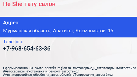 He & She, тату-салон по адресу Мурманская область, Апатиты, Космонавтов, 15 в дальнейшем Организация, размещена в следующих категориях: