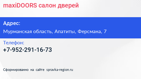 maxiDOORS, салон дверей по адресу Мурманская область, Апатиты, Ферсмана, 7 в дальнейшем Организация, размещена в следующих категориях: