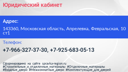 Юридический кабинет по адресу 143360, Московская область, Апрелевка, Февральская, 10 ст1 в дальнейшем Организация, размещена в следующих категориях: