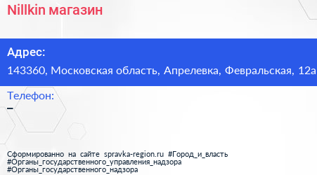 Nillkin, магазин по адресу 143360, Московская область, Апрелевка, Февральская, 12а в дальнейшем Организация, размещена в следующих категориях: