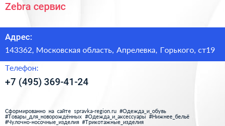 Zebra-сервис по адресу 143362, Московская область, Апрелевка, Горького, ст19 в дальнейшем Организация, размещена в следующих категориях: