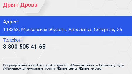 Дрын-Дрова по адресу 143363, Московская область, Апрелевка, Северная, 26 в дальнейшем Организация, размещена в следующих категориях: