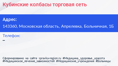 Кубинские колбасы, торговая сеть по адресу 143360, Московская область, Апрелевка, Больничная, 1Б в дальнейшем Организация, размещена в следующих категориях: