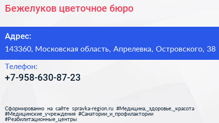 Бежелуков, цветочное бюро по адресу 143360, Московская область, Апрелевка, Островского, 38 в дальнейшем Организация, размещена в следующих категориях: