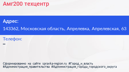 Амг200, техцентр по адресу 143362, Московская область, Апрелевка, Апрелевская, 63 в дальнейшем Организация, размещена в следующих категориях: