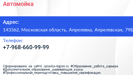 Автомойка по адресу 143362, Московская область, Апрелевка, Апрелевская, 79Б в дальнейшем Организация, размещена в следующих категориях: