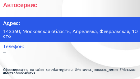 Автосервис по адресу 143360, Московская область, Апрелевка, Февральская, 10 ст6 в дальнейшем Организация, размещена в следующих категориях: