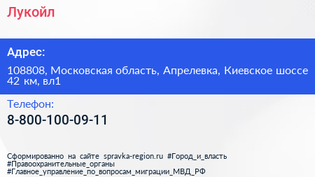 Лукойл по адресу 108808, Московская область, Апрелевка, Киевское шоссе 42 км, вл1 в дальнейшем Организация, размещена в следующих категориях: