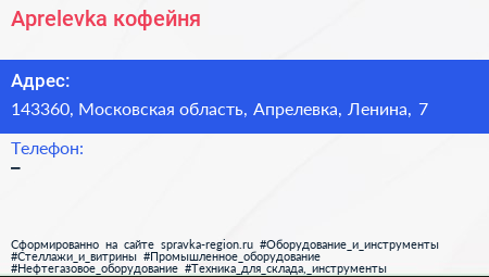 Aprelevka, кофейня по адресу 143360, Московская область, Апрелевка, Ленина, 7 в дальнейшем Организация, размещена в следующих категориях: