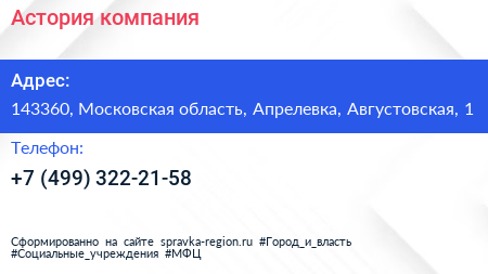 Адрес: Московская область, Апрелевка, Августовская, 14