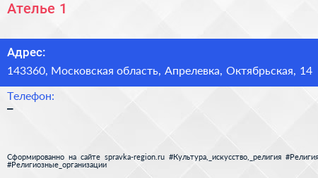 Ателье #1 по адресу 143360, Московская область, Апрелевка, Октябрьская, 14 в дальнейшем Организация, размещена в следующих категориях: