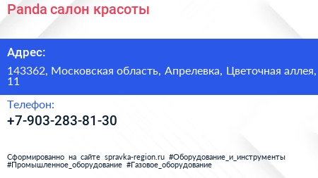 Panda, салон красоты по адресу 143362, Московская область, Апрелевка, Цветочная аллея, 11 в дальнейшем Организация, размещена в следующих категориях: