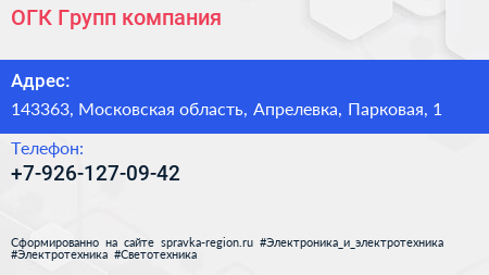 ОГК-Групп, компания по адресу 143363, Московская область, Апрелевка, Парковая, 1 в дальнейшем Организация, размещена в следующих категориях:
