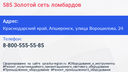 585*Золотой, сеть ломбардов по адресу Краснодарский край, Апшеронск, улица Ворошилова, 24 в дальнейшем Организация, размещена в следующих категориях:
