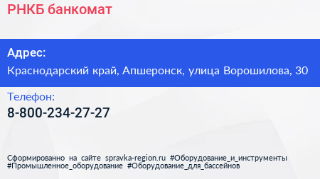 РНКБ, банкомат по адресу Краснодарский край, Апшеронск, улица Ворошилова, 30 в дальнейшем Организация, размещена в следующих категориях: