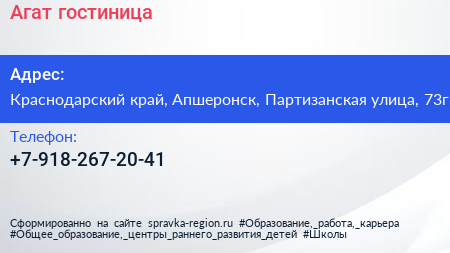 Агат, гостиница по адресу Краснодарский край, Апшеронск, Партизанская улица, 73г в дальнейшем Организация, размещена в следующих категориях: