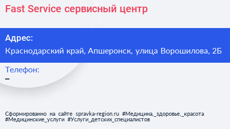 Fast Service, сервисный центр по адресу Краснодарский край, Апшеронск, улица Ворошилова, 2Б в дальнейшем Организация, размещена в следующих категориях: