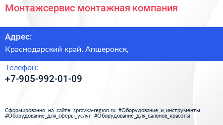 Монтажсервис, монтажная компания по адресу Краснодарский край, Апшеронск, в дальнейшем Организация, размещена в следующих категориях: