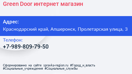 Green Door, интернет-магазин по адресу Краснодарский край, Апшеронск, Пролетарская улица, 3 в дальнейшем Организация, размещена в следующих категориях: