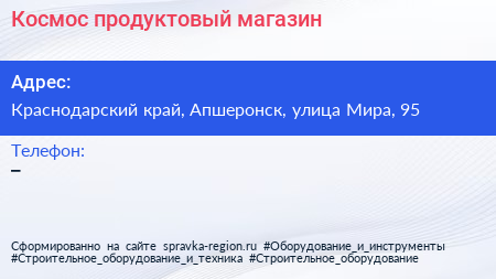 Космос, продуктовый магазин по адресу Краснодарский край, Апшеронск, улица Мира, 95 в дальнейшем Организация, размещена в следующих категориях: