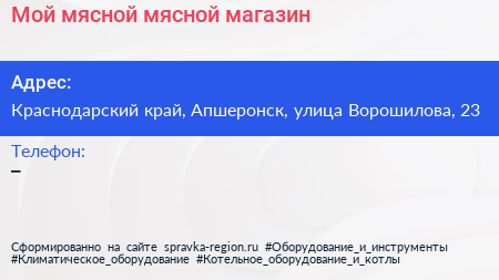 Мой мясной, мясной магазин по адресу Краснодарский край, Апшеронск, улица Ворошилова, 23 в дальнейшем Организация, размещена в следующих категориях: