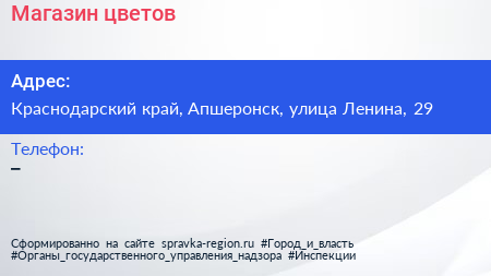 Магазин цветов по адресу Краснодарский край, Апшеронск, улица Ленина, 29 в дальнейшем Организация, размещена в следующих категориях: