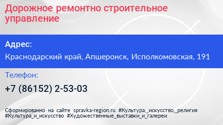 Дорожное ремонтно строительное управление по адресу Краснодарский край, Апшеронск, Исполкомовская, 191 в дальнейшем Организация, размещена в следующих категориях: