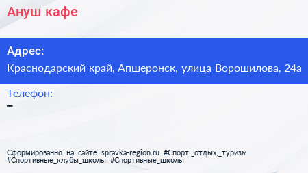 Ануш, кафе по адресу Краснодарский край, Апшеронск, улица Ворошилова, 24а в дальнейшем Организация, размещена в следующих категориях: