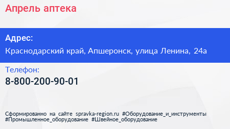 Апрель, аптека по адресу Краснодарский край, Апшеронск, улица Ленина, 24а в дальнейшем Организация, размещена в следующих категориях: