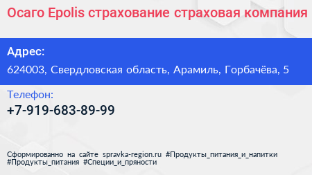 Осаго Epolis страхование, страховая компания по адресу 624003, Свердловская область, Арамиль, Горбачёва, 5 в дальнейшем Организация, размещена в следующих категориях: