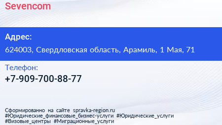 Sevencom по адресу 624003, Свердловская область, Арамиль, 1 Мая, 71 в дальнейшем Организация, размещена в следующих категориях:
