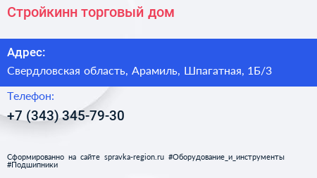 Стройкинн, торговый дом по адресу Свердловская область, Арамиль, Шпагатная, 1Б/3 в дальнейшем Организация, размещена в следующих категориях:
