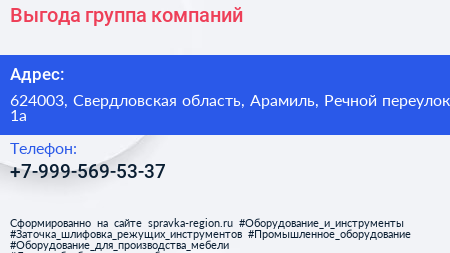 Выгода, группа компаний по адресу 624003, Свердловская область, Арамиль, Речной переулок, 1а в дальнейшем Организация, размещена в следующих категориях: