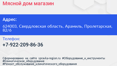 Мясной дом, магазин по адресу 624003, Свердловская область, Арамиль, Пролетарская, 82/6 в дальнейшем Организация, размещена в следующих категориях: