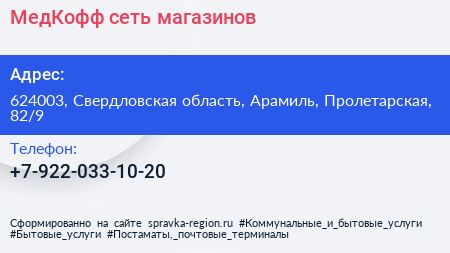 МедКофф, сеть магазинов по адресу 624003, Свердловская область, Арамиль, Пролетарская, 82/9 в дальнейшем Организация, размещена в следующих категориях: