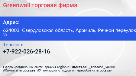 Greenwall, торговая фирма по адресу 624003, Свердловская область, Арамиль, Речной переулок, 2г в дальнейшем Организация, размещена в следующих категориях: