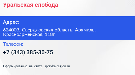 Уральская слобода по адресу 624003, Свердловская область, Арамиль, Красноармейская, 118г в дальнейшем Организация, размещена в следующих категориях: