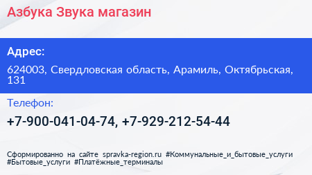 Азбука Звука, магазин по адресу 624003, Свердловская область, Арамиль, Октябрьская, 131 в дальнейшем Организация, размещена в следующих категориях: