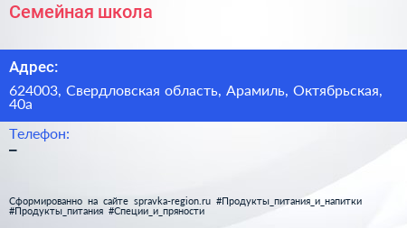 Семейная школа по адресу 624003, Свердловская область, Арамиль, Октябрьская, 40а в дальнейшем Организация, размещена в следующих категориях: