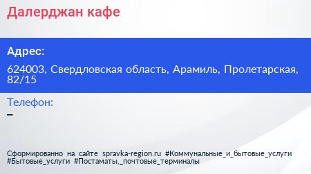 Далерджан, кафе по адресу 624003, Свердловская область, Арамиль, Пролетарская, 82/15 в дальнейшем Организация, размещена в следующих категориях: