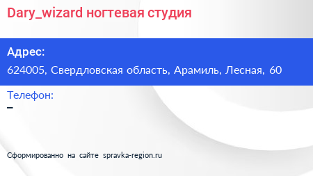 Dary_wizard, ногтевая студия по адресу 624005, Свердловская область, Арамиль, Лесная, 60 в дальнейшем Организация, размещена в следующих категориях: